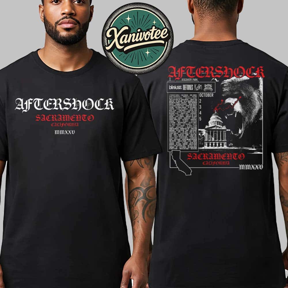 Step into the energy of Sacramento’s biggest rock celebration with the Aftershock Festival 2025 Seeing Red Tee. This bold black shirt was created for fans attending Discovery Park on October 2–5, 2025, and it’s designed to capture the raw power of heavy music. The front keeps it simple yet striking with gothic-inspired lettering, while the back features a fierce roaring bear, the iconic California Capitol dome, and the full festival lineup. It’s more than just merchandise—it’s a statement piece that fuses aggressive style with the spirit of one of the world’s largest rock and metal gatherings.