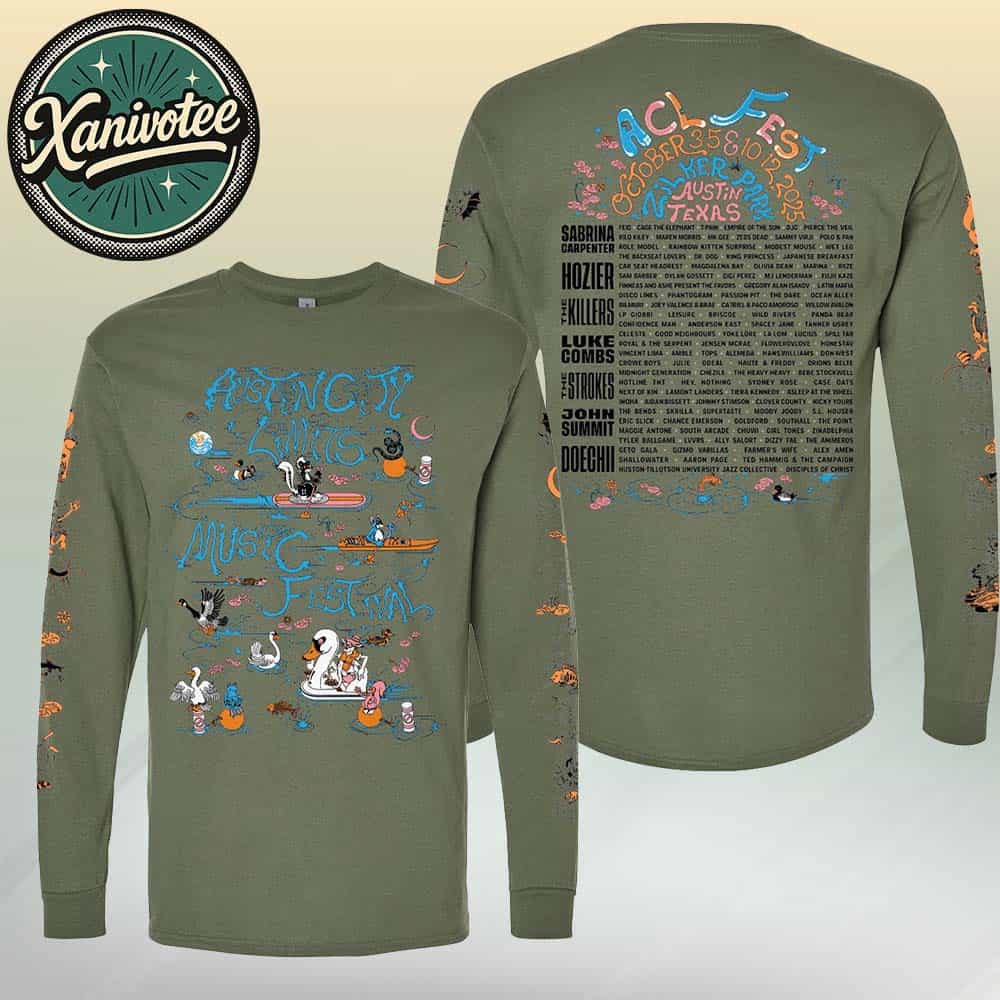 Austin City Limits Music Festival 2025 Poster Lineup Long Sleeve Tee On October 3-5 And 10-12 2025 At Zilker Park In Austin TX Long Sleeve T-Shirt