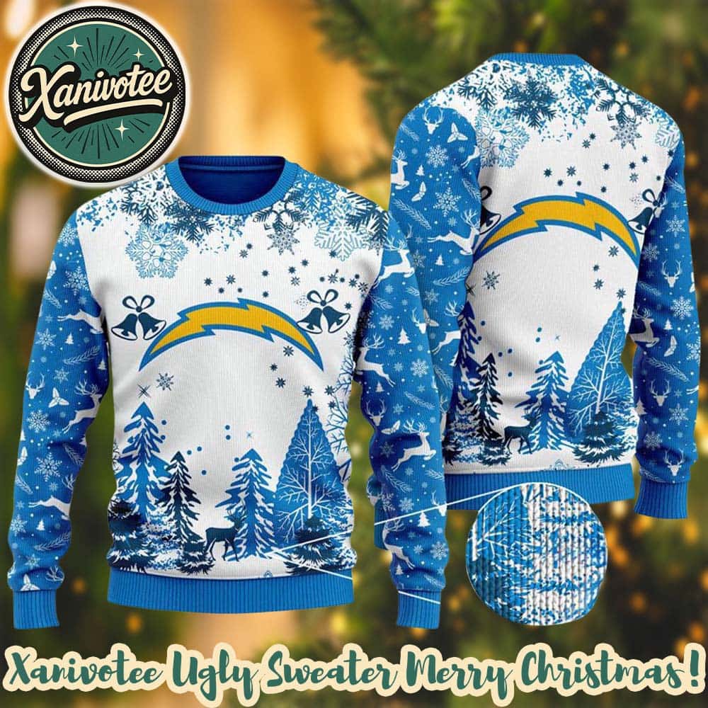 Dress in style and celebrate the holidays with our exclusive NFL Los Angeles Chargers Logo Football Team Special Xmas Tree 2025 Christmas Ugly Sweater. Designed with festive patterns and creative details, this cozy piece is perfect for anyone who wants to add a fun and unique touch to their holiday wardrobe. Whether you are attending a Christmas party, a family gathering, or simply enjoying the cozy season, it will help you stand out while spreading cheerful holiday vibes.