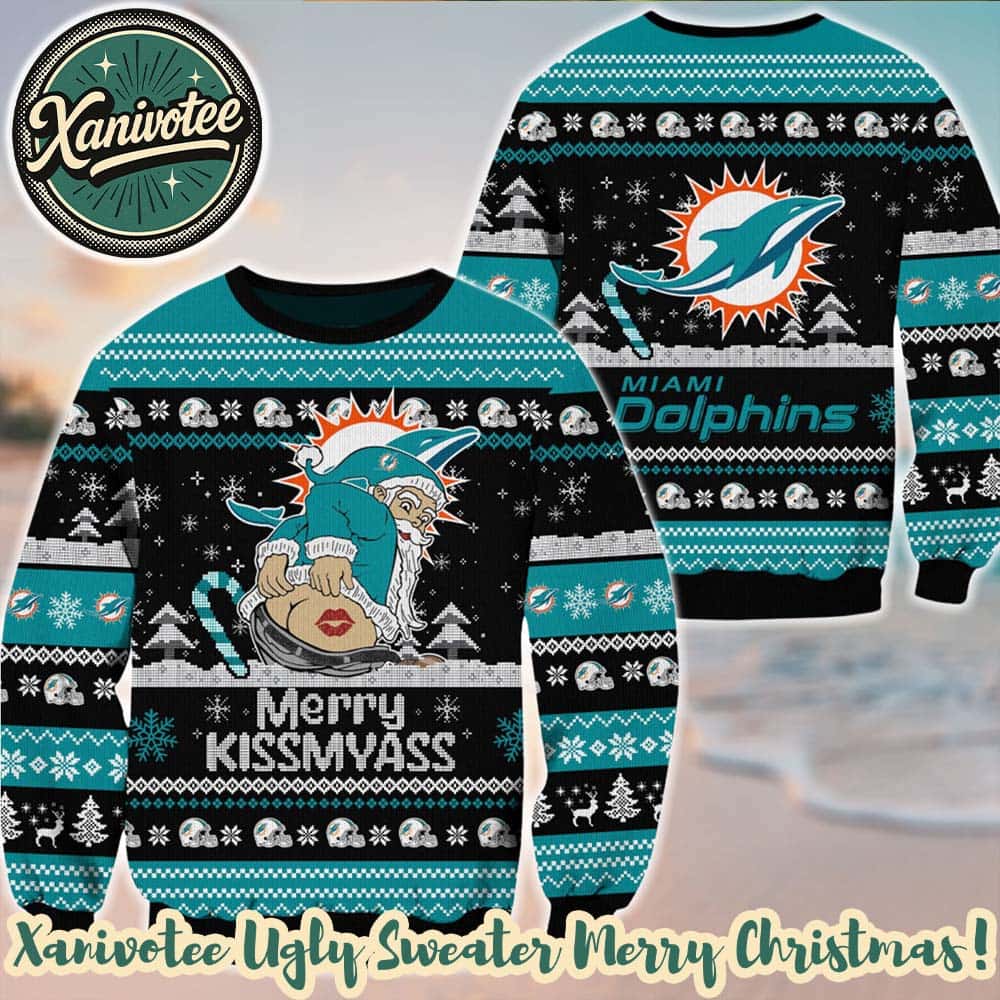 About NFL Ugly Miami Dolphins x Santa Claus Merrykissmyass Funny Cute Ugly Christmas Sweater Gift 2025: