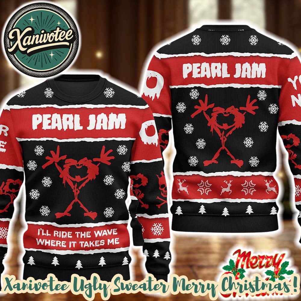 About Pearl Jam I’ll Ride The Wave Where It Takes Me 2025 Knitted Ugly Christmas Sweater: