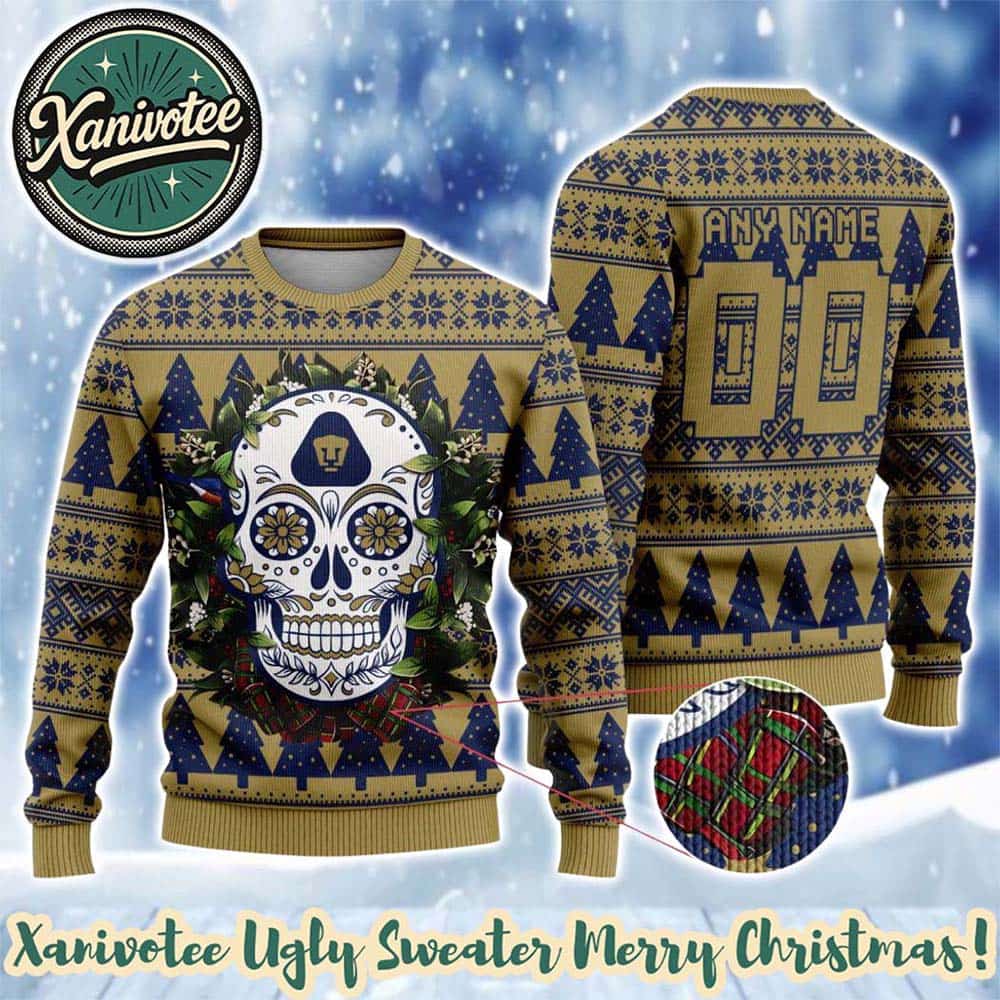 Pumas UNAM LIGA MX Special Sugar Skull Ugly Christmas Sweater Gift For Holiday 2025