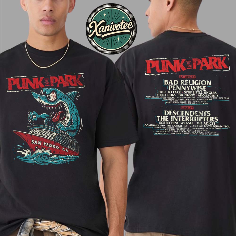 Explore Our Unique Punk In The Park San Pedro California 2025 Merch Shark Tee On October 4 And 5 2025 Two Sided Print Unisex T-Shirt
