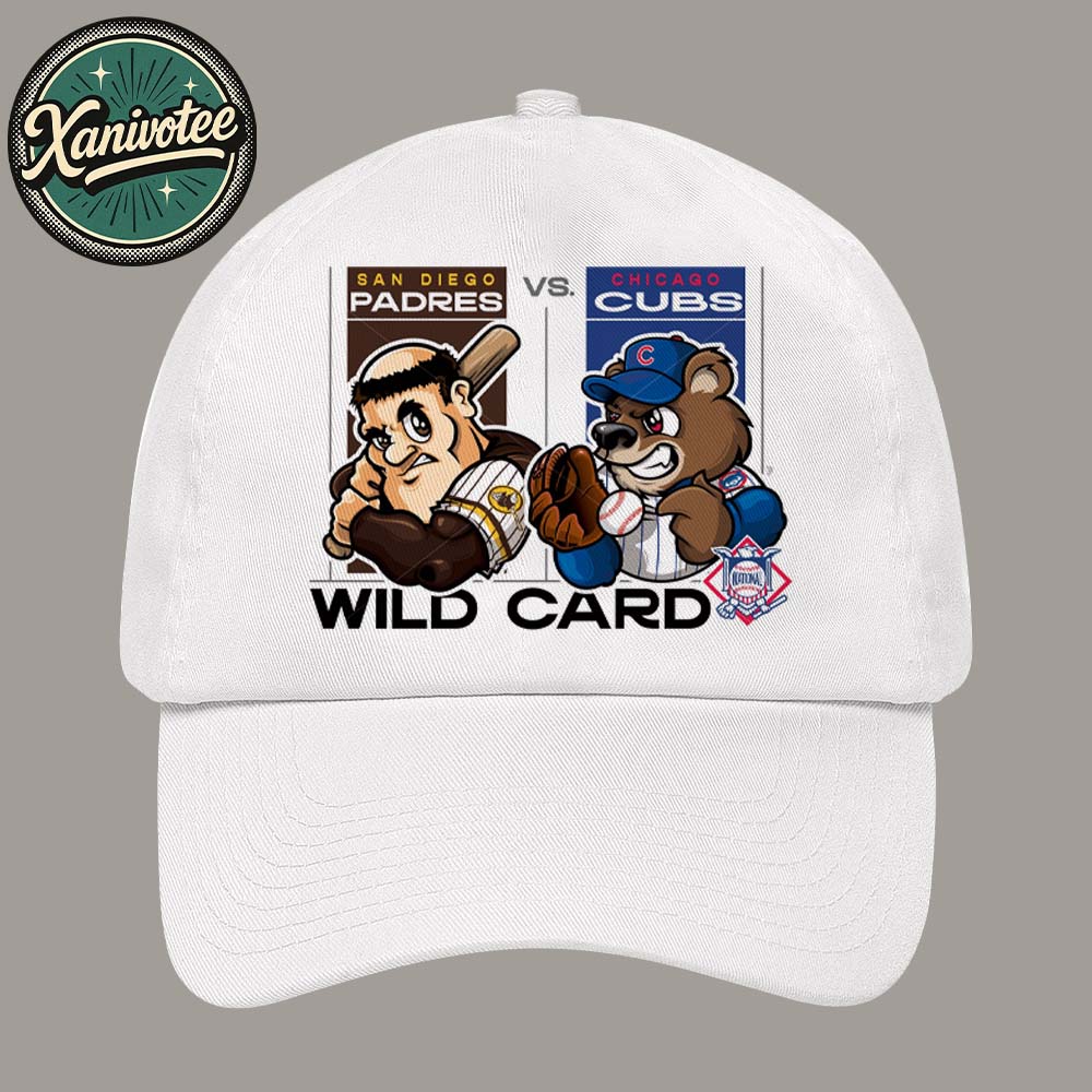 About San Diego Padres Vs Chicago Cubs Mascot Cover 2025 MLB Wild Card Matchups Classic Cap Snapback Hat: