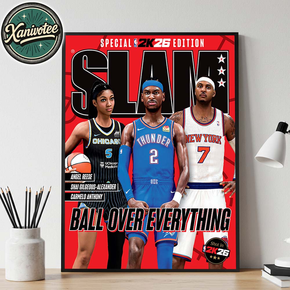 Take a Closer Look at the SLAM 259 Ball Over Everything Cover Angel Reese Shai Gilgeous-Alexander And Carmelo Anthony Special NBA 2K26 Edition Home Decor Poster Canvas Series
