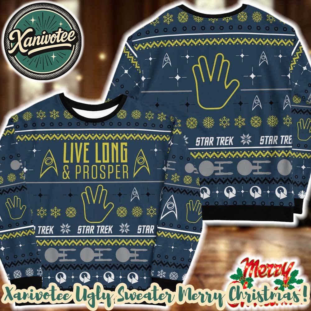 About Star Trek Live Long And Prosper Gift For Fan 2025 Knitted Ugly Christmas Sweater: