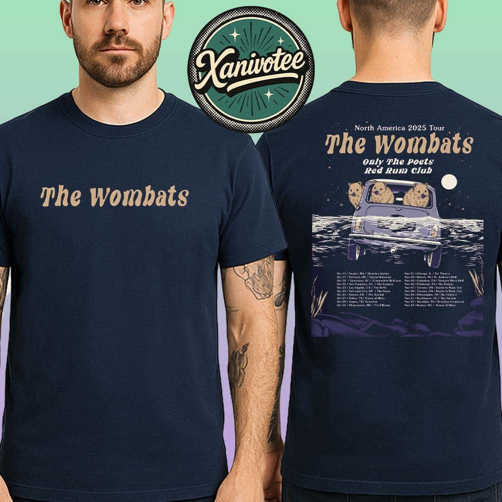 The Wombats North America 2025 Tour Only The Poets Red Rum Club Dates List Two Sided Print T-Shirt